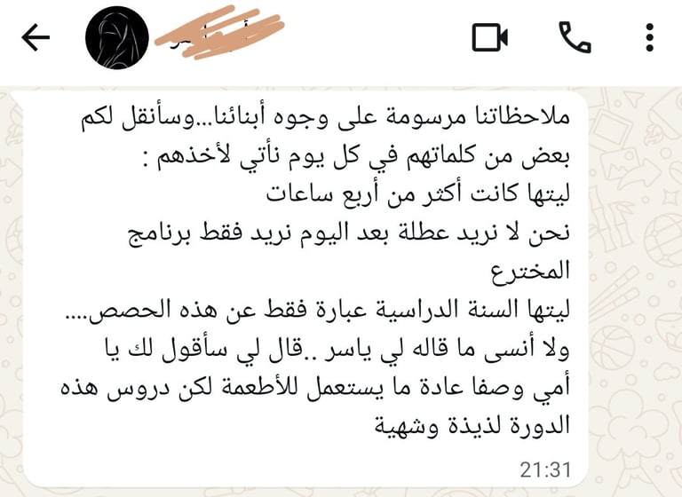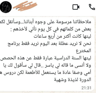 نشكر الأستاذ حمزة جزيل الشكر على جهوده القيمة التي بذلها من أجل أبنائنا. لقد كانت هذه الدورة فرصة مميزة لهم لاكتشاف مهارات جديدة وتوسيع آفاقهم. نسأل الله أن يبارك في عملك وأن يوفقك في مسيرتك العلمية والمهنية، فأنت قدوة لأبنائنا ومصدر إلهام لهم.